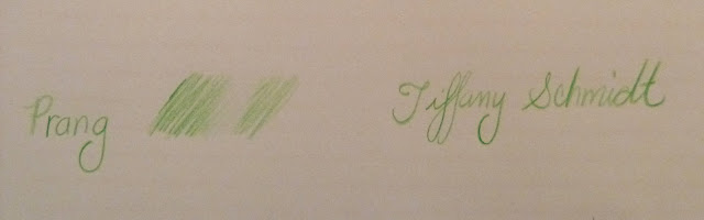 To make this all scientific-ish, I sharpened each colored pencil with the same plastic sharpener. Wrote the brand, shaded, and signed my name with each.*** I used the same eraser to attempt to erase each -- and swiped it the same number of swipes (7 swipes).